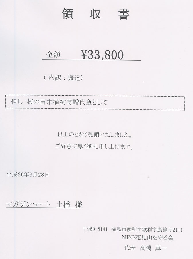 復興支援サクラ植樹寄付 -14,440