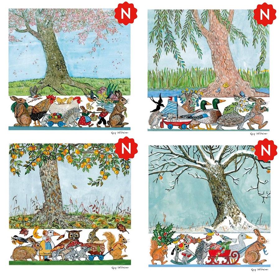 Guy Untereiner ポストカード4枚 - 春夏秋冬