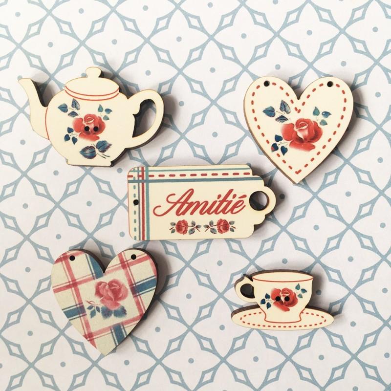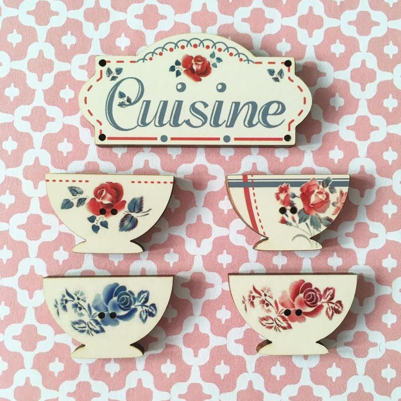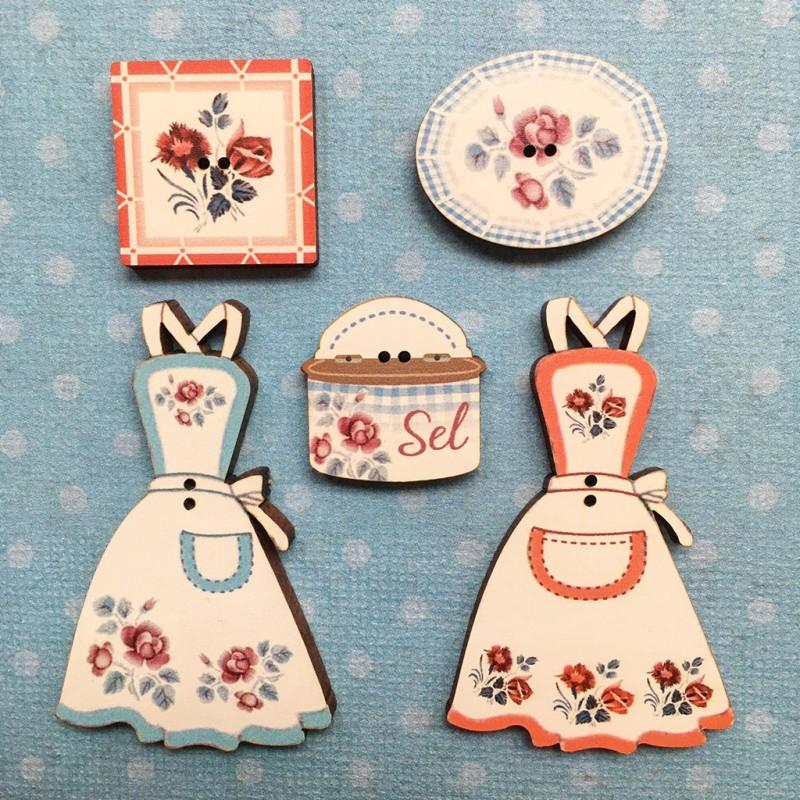 Les Brodeuses Parisiennes 木製ボタン - 5 Boutons Cuisine d'Alsace