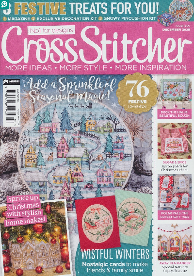 表紙のクリスマスの街は素敵ですがデザインが丸いので、後からフープをはめて完成でしょうか。 |