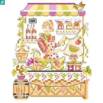 [★5つ] このシリーズは大好きで、今回のブドウ屋さんも秋らしくて購入しました。まだ,すみれのお店しか完成していませんが,楽しくステッチできました。