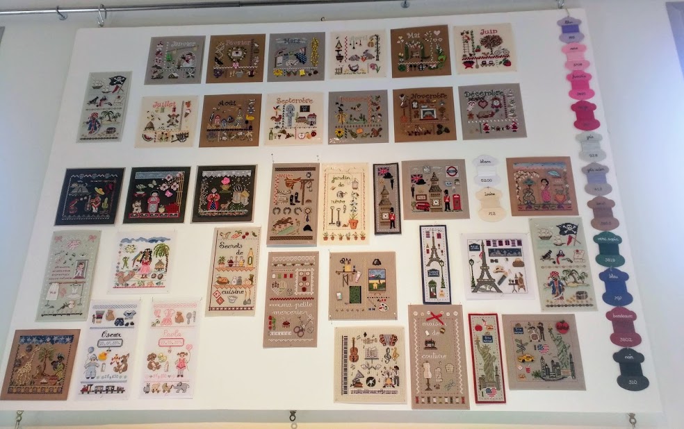書籍、図案、生地、フェルト、糸、などがずらり。
