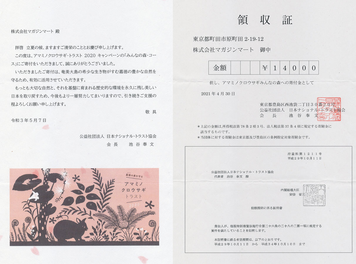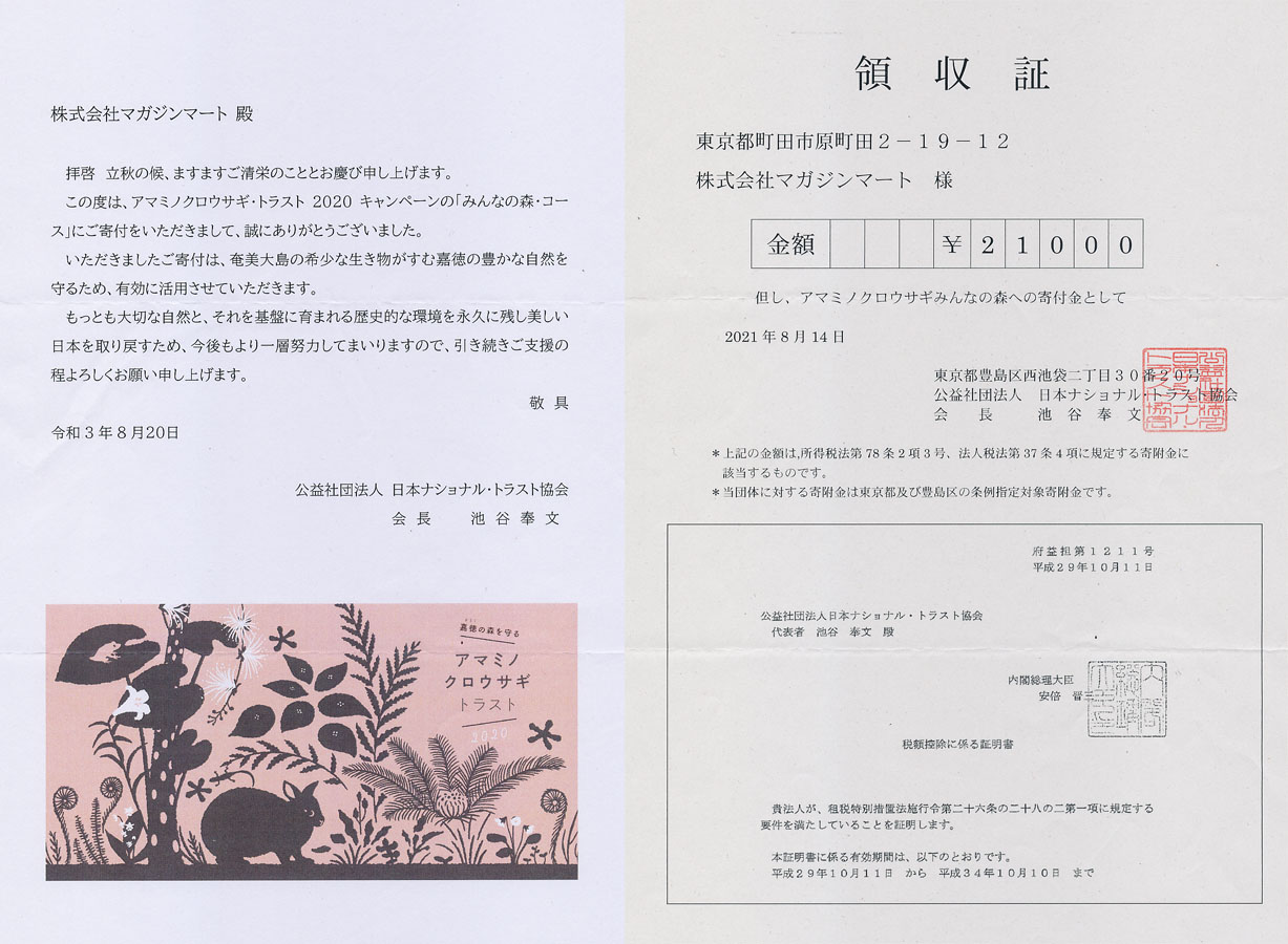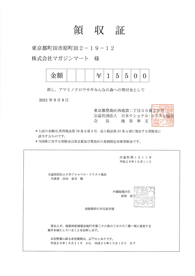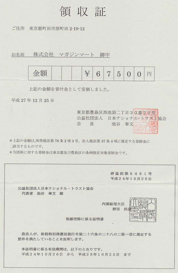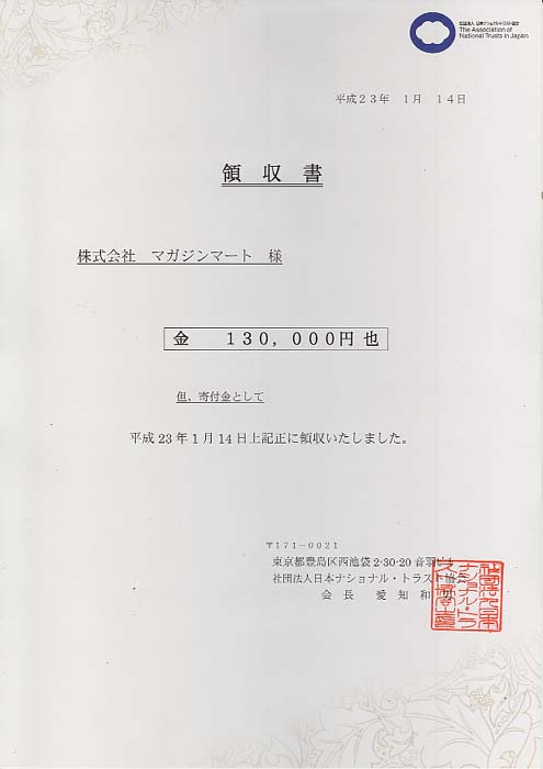 マガジンマートは、2009年から10年間、公益社団法人 日本ナショナル・トラスト協会[外部リンク] の団体賛助会員として同会活動を支援させていただきました。
