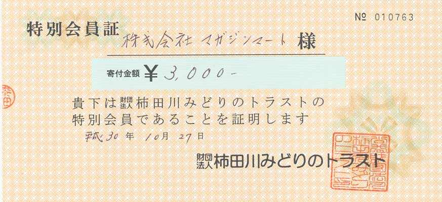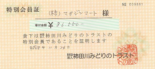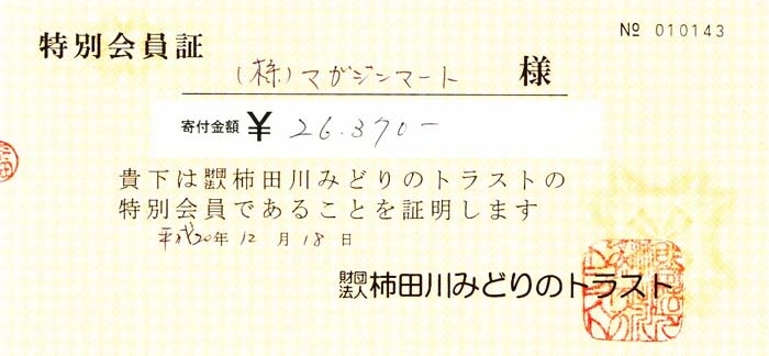 「多くのご参加ありがとうございました。寄付収益金合計2911円に不足分を当社で補いまして、¥3000を中道志川トラスト協会へ寄付させて頂きました!」