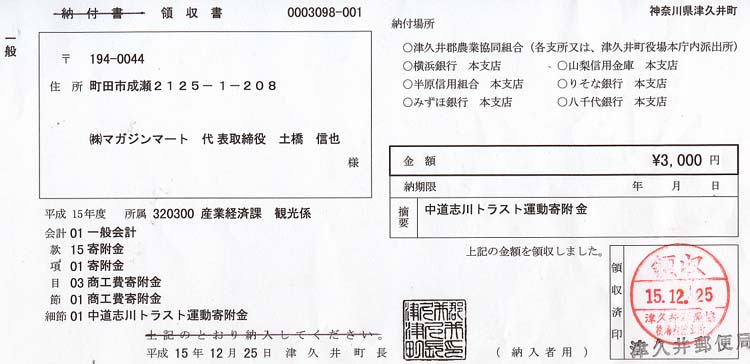 (←端数を切り上げて¥3,000で寄付を致しました。クリックすると拡大します)