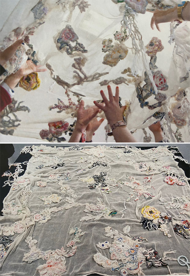 一般客と自由に交流ができるように、刺繍のベールは大きなテーブルの上に広げられ、展示されました。
