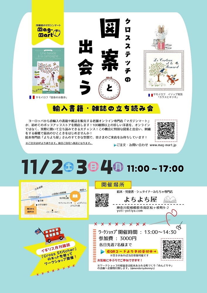 11月初めの三連休に、相模原市の絵本専門店で『立ち読み会』を開催いたします!
