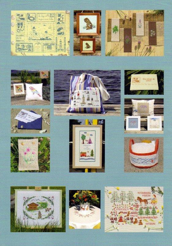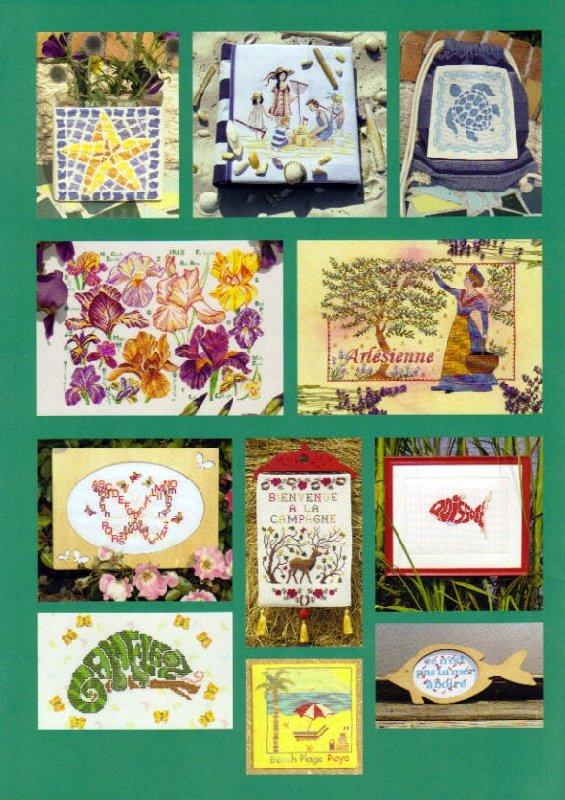 サモさんのチャート(表紙左下)は4色の色合いが綺麗で気に入りました。一部抜粋も可愛らしく、これだけでも刺したいです。インドのチャート(裏表紙左下)も見たことなく素敵です。Annick Abrialさんのハロウイン(裏表紙右上)も段染めが素敵ですが、糸はAnnickさんのもの指定で、残念です。