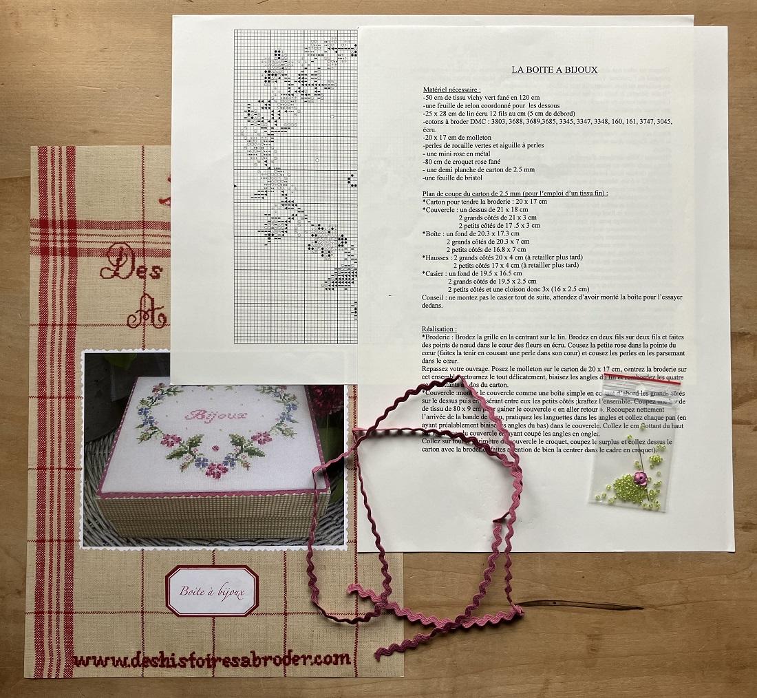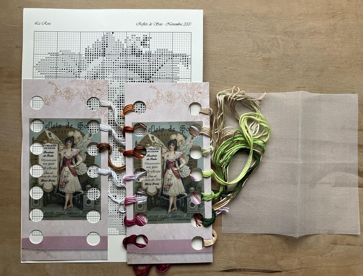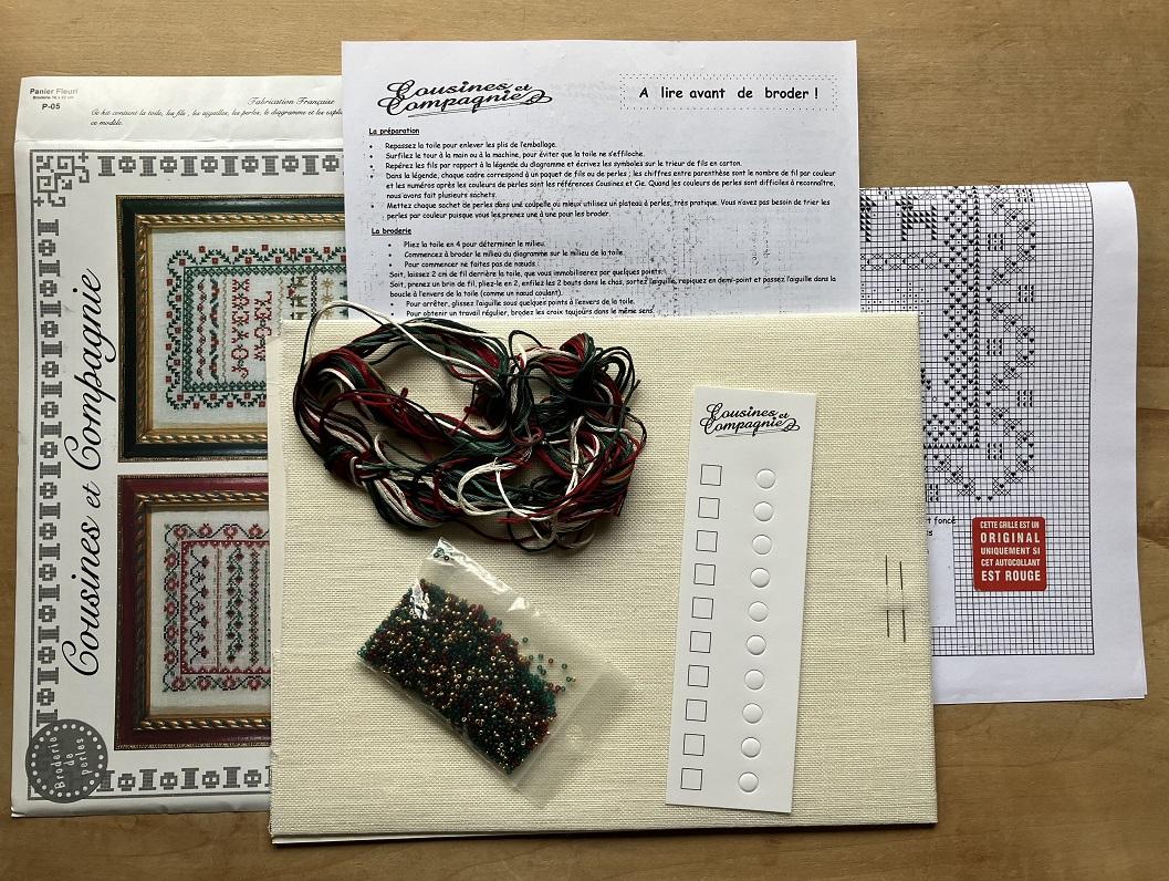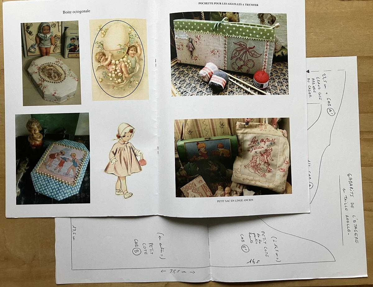 上段はピンクッションのようですが、布はついていないので、カントリー風のハギレを探して作ってみます