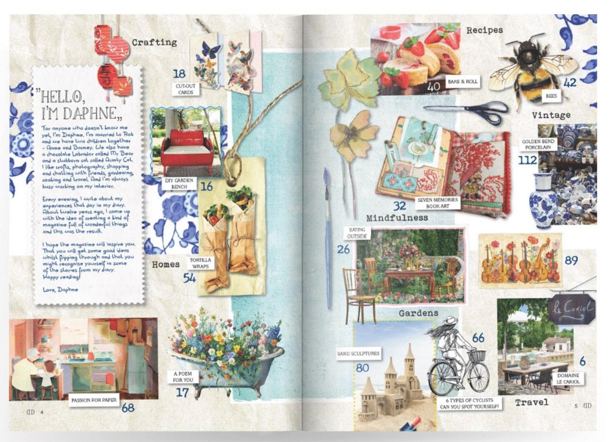 ずっと欲しかった雑誌でした。写真やイラストのコラージュがとても可愛いのでどのページを見ても楽しいです。水彩画が好きなのでたくさん掲載されていて嬉しいです!旅行や料理、お花が好きな方におすすめです。