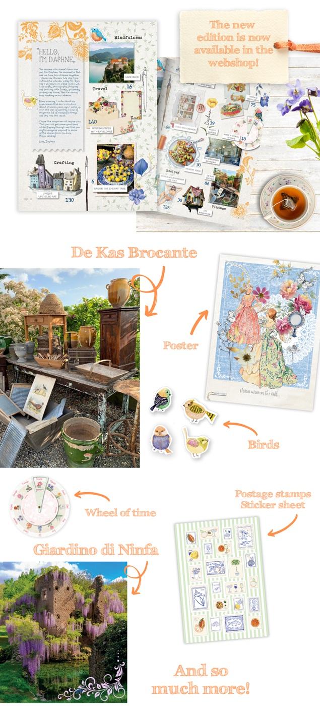 ページを開くたびに癒されます。世界旅行に行った気分になります。ガーデニングスケジュールの時計や小鳥と洗濯ばさみが気に入りました。ドレスデンの陶器に囲まれたお店に行きたくなりました。どのページもデザインか良くてコラージュの参考になります。