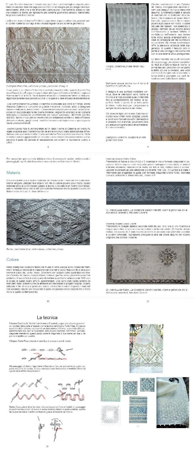 最初に歴史的な解説や材料・道具・技法についての説明が合わせて23ページ(全部イタリア語です)。残りが作品写真と図案です。作品番号は33番まで振られていますが、ひとつの番号に複数デザインがまとめられている箇所もあるので、デザイン総数はもう少し多めです。