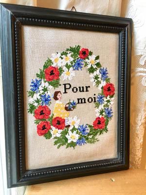ラベンダーの紫と白のマーガレット、そこに、羽をつけた真っ赤なワンピースの妖精が、アクセントになり、綺麗と可愛さをミックスした素敵な図案です。図案に一目惚れして買いましたが、始めるまでに、少し時間がかかりそうです。早く始めたいので、今、刺してる作品のピッチがあがります。