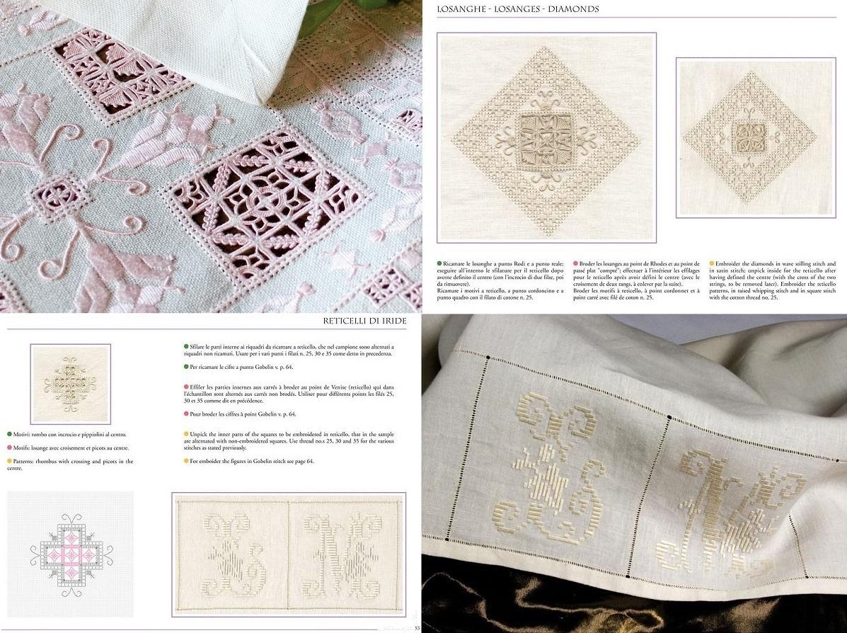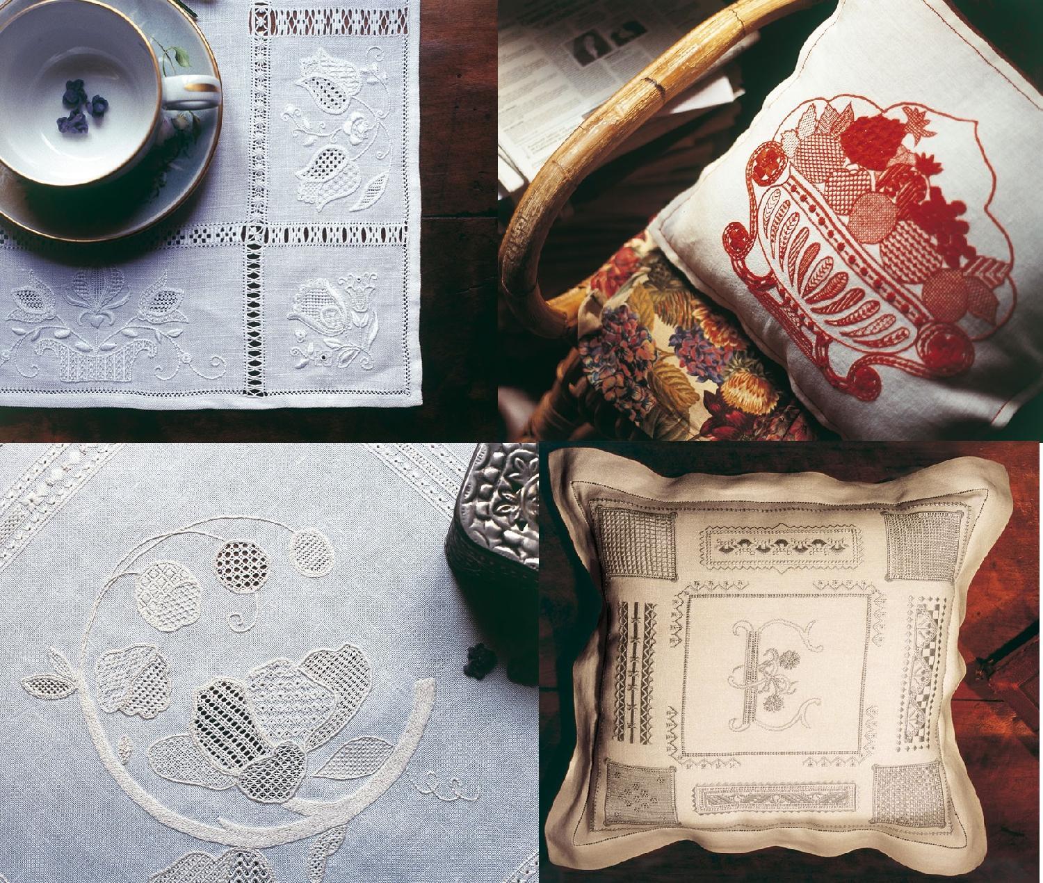 イタリアの刺繍は、色が綺麗です。北欧の、白のすっきりした