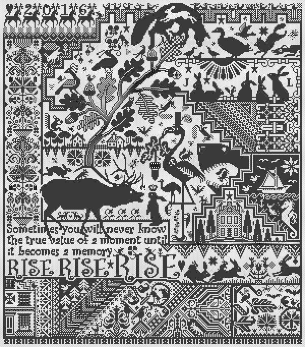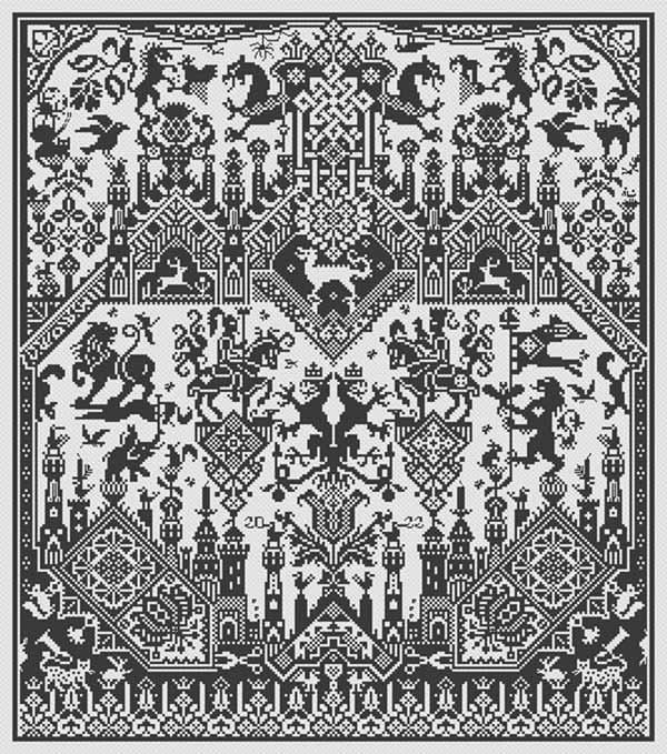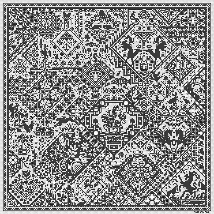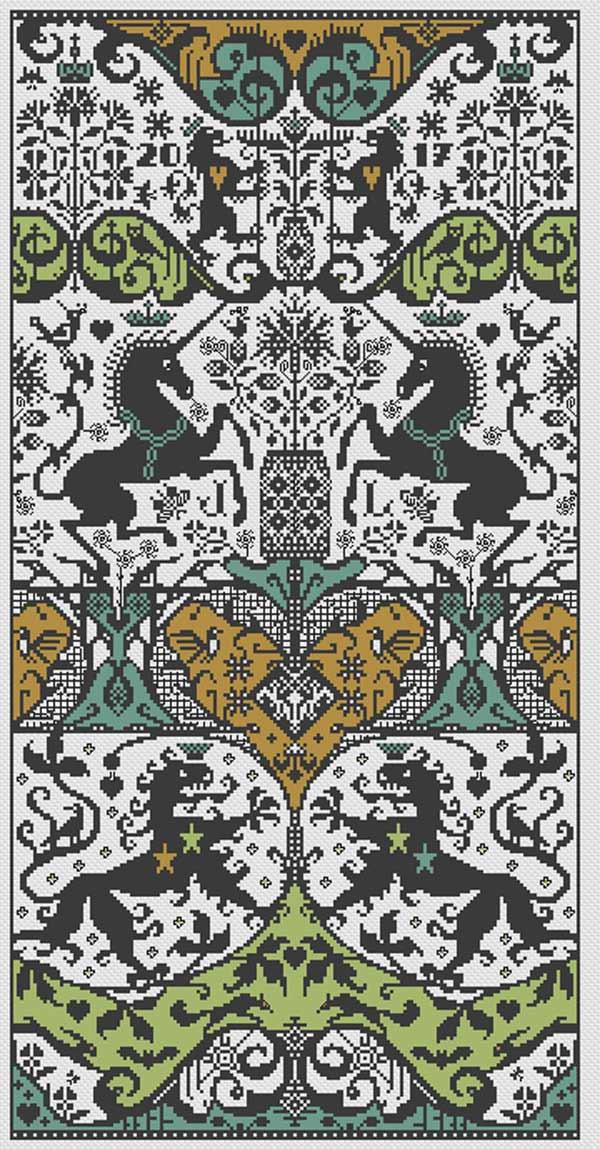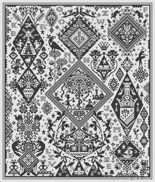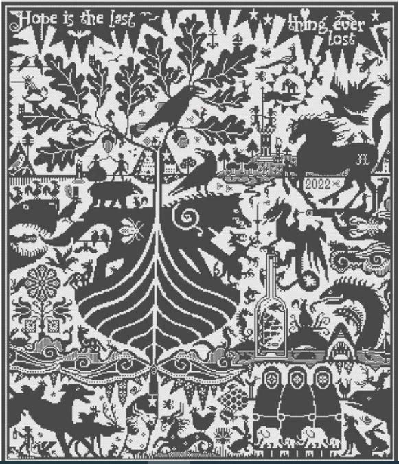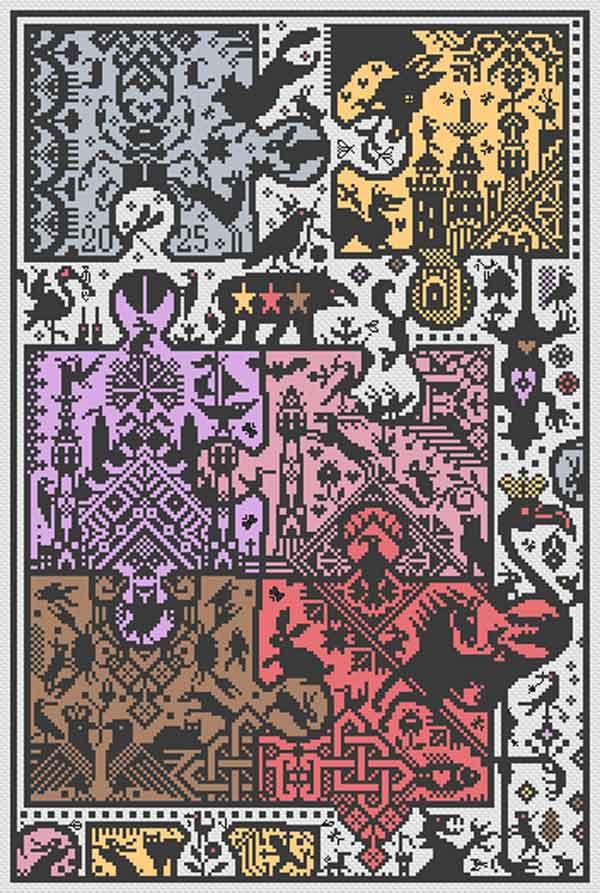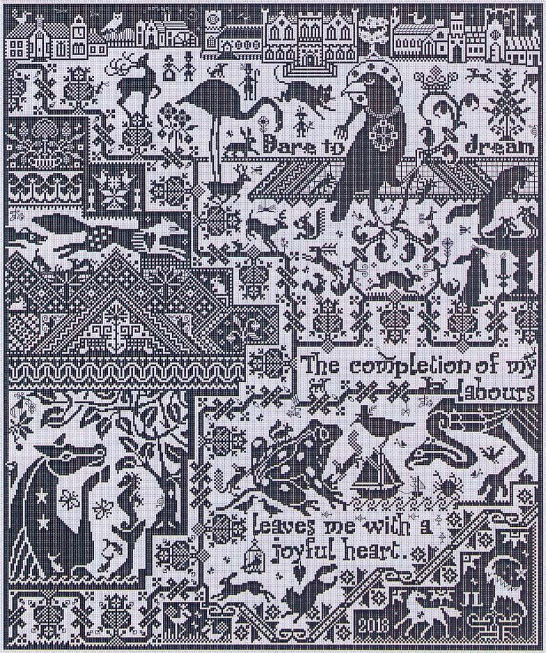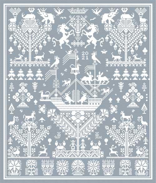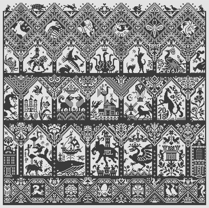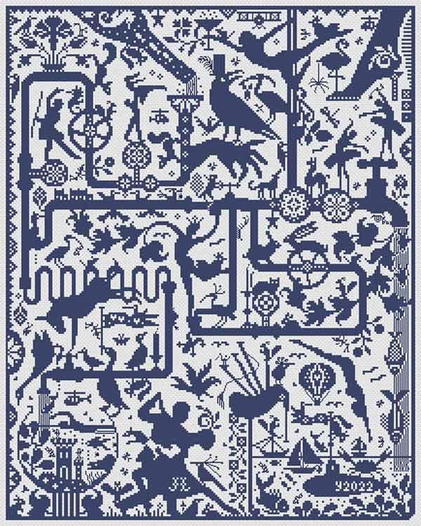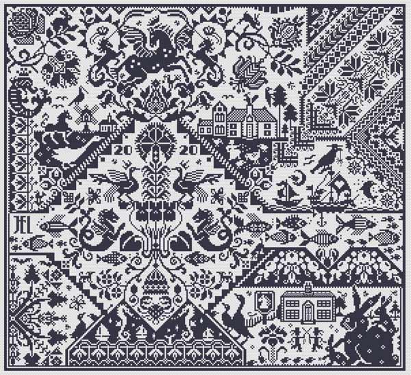 図案が分割されているのが珍しかったので購入してみました。こちらもサイズ的には大きくないのでステッチしやすそうです。こちゃこちゃしてみっちりしたデザインでステッチするのもワクワクしますね。