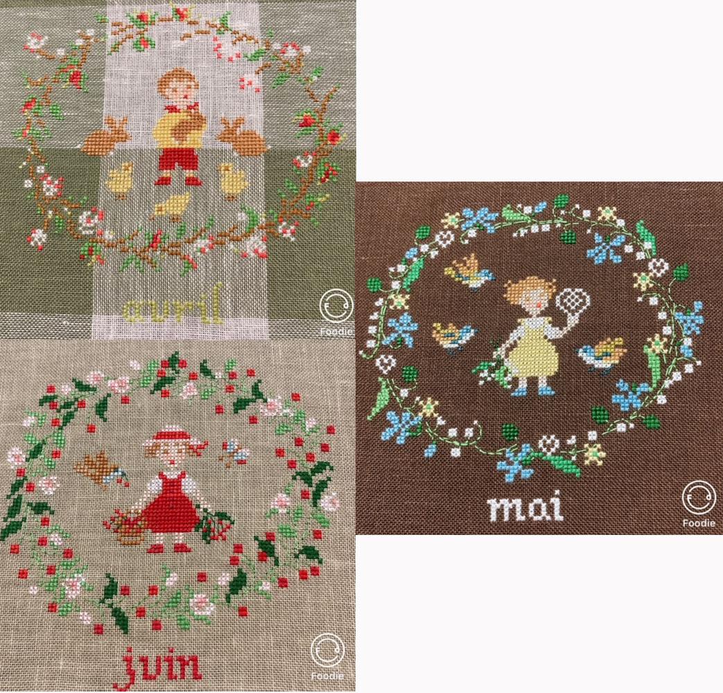 布によっても印象が変わるので12ヶ月色々な布に刺していこうと思います♪