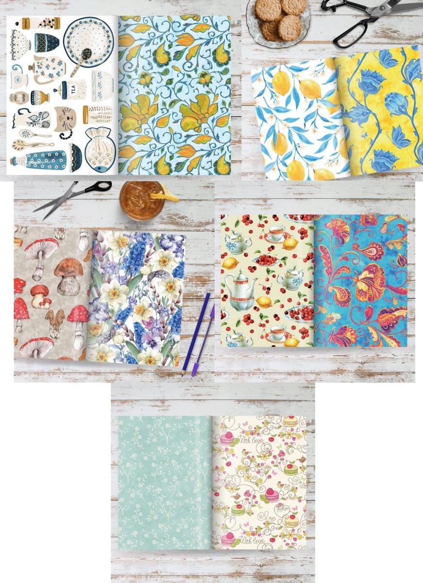 第2段のスクラップブックも可愛い絵柄盛りだくさん。両面がお気に入りのパターンもあって 勿体なくて使えずにいます。
