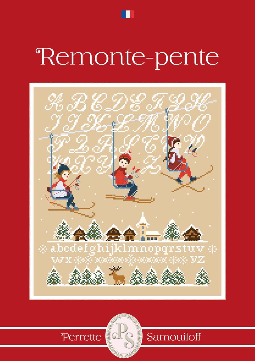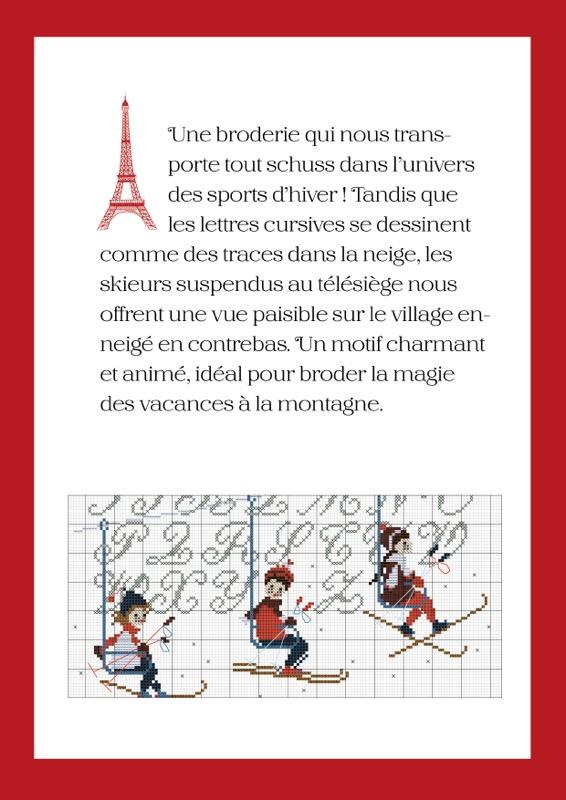 アルファベットの雪山に,リフトに乗るスキーヤーそして眼下には可愛い街並みや樹々。ウィンタースポーツの楽しさが表現されていて凄く可愛いチャートです。