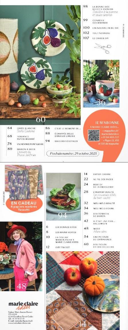 ↓版元の動画で中身をパラパラご覧ください♪ ❤吉報❤ パリのクロスステッチブランド『LBP』 x MCIのコラボが実現! 今号に『LBP』4つの手芸図案を掲載 ![]() 同時に、トートバッグにぴったりな別図案[外部リンク] もリリースされています♪ (近日中に当店で取り扱い開始予定) ∴‥∵‥∴‥∵‥∴‥∴‥∵‥∴‥∵‥∴ ハロウィンがやってきた!小さな魔女の衣装やデコが可愛い 古椅子をオシャレにリメイク マーブル柄のポシェット 大きめパッチワークのレッスン インパクトあるイチジクの図案 秋模様の刺繍をバッグに♪ レトロモードが新鮮 モザイク入門 野菜だけのバーガー トマトの季節 赤と白のひざ掛けやタータンのクッション 出版社名:GROUPE MARIE CLAIRE 言語:フランス語 |