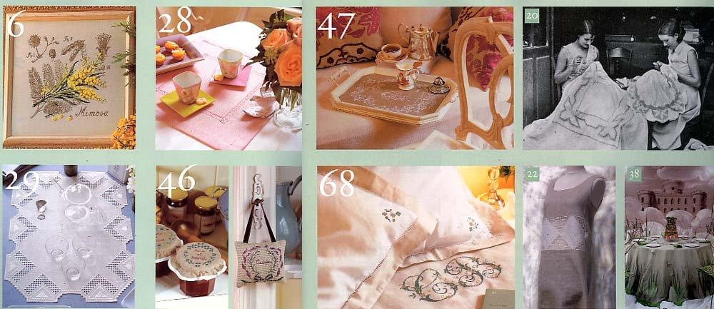 ハーダンガー特集にある作品はどれもすてき。刺し方の異なる3種のミモザも面白い。アンティークっぽい色使いのスクリーンやレーシーなティーマットも◎。