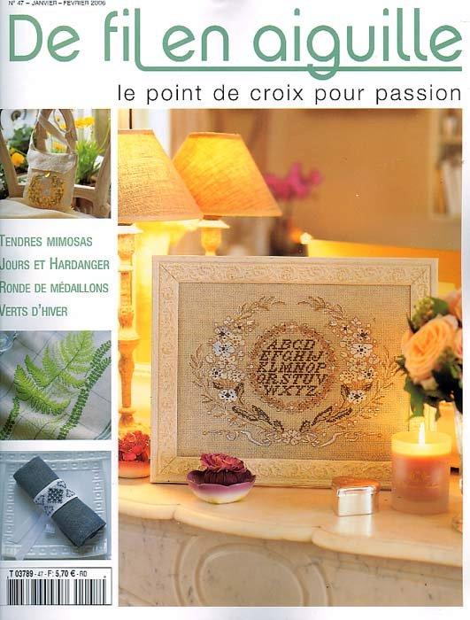 ミモザは、表紙と内容画像6pの作品の他に、M.-T.Saint-Aubinさんのアルファベットサンプラー(ミモザが主役です)があります。花はクロスステッチではなく、フレンチナットで刺されています。動きのある雰囲気がとても素敵です。
