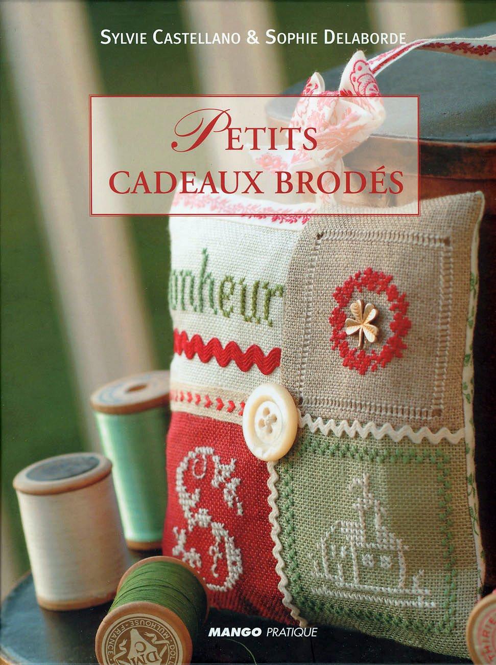 1色または2色刺しの刺繍を中心に、布と一緒に仕立ててあり、刺繍図案&多くの写真で楽しめます。早速、刺繍を“フランス風プレゼント小物”に仕立てるのに大活躍しそう。