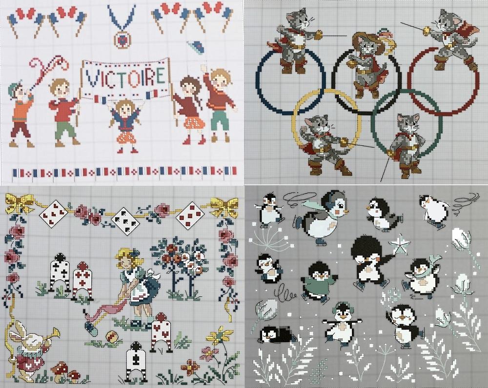 どの作家さんも、なぜこんなに可愛い図案なの!って感じでした。オリンピックのあらゆる競技も絵にしてしまうんですね。ヴェロニクさんは童話とコラボしていますし、サモさんは陸上やサッカー、どれも挿したいです。マリーさんは今回、図案が3段に統一されている感じでお洒落でした。