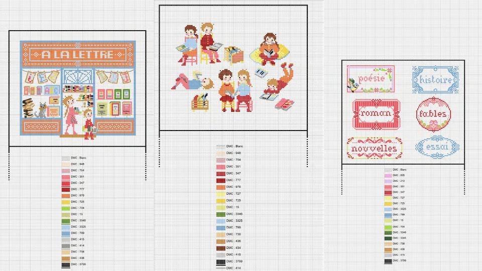 ヴェロニクさんの、女の子と男の子が色んなポーズで本を楽しんでいる図案がとてもかわいくて、これだけでも買う価値ありでした!