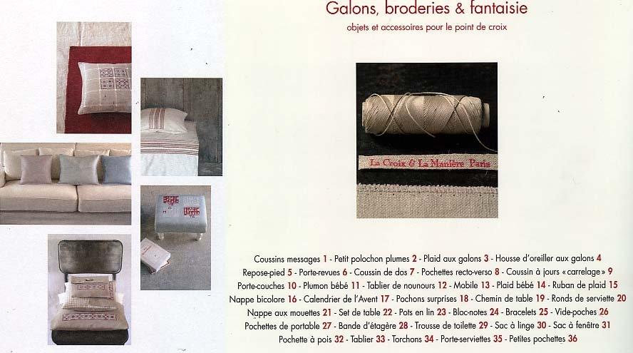 2007年 MARABOUT社刊 21 x 25 センチ ちょっと大人テイストのシンプルクロスステッチ。 格子や水玉、無地のリネン布で作った暮らしに寄り添った布達にもうひと手間かけて、手仕事のぬくもりをプラスしませんか? クッションカバー、スツールカバー、BABY用の布団カバーにリネン入れ、テーブルリネン、様々な袋物。 各種パイピングを施したお仕立ても是非ご参考に! |