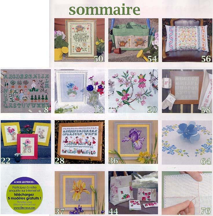 Samouiloffさんのアルファベットサンプラー2点は春夏らしい色合いで、とてもいい感じです。他の作品も春夏らしく明るい色合いのものが多いようです。花文字もすてきで、いろいろ応用できそうです。巻末にクロスステッチについての生地、糸、用具、刺し方、準備などについて7ページほど載っています。最後のページの刺繍の裏の写真は、とてもきれいにできているものが載っていてとても勉強になりました。