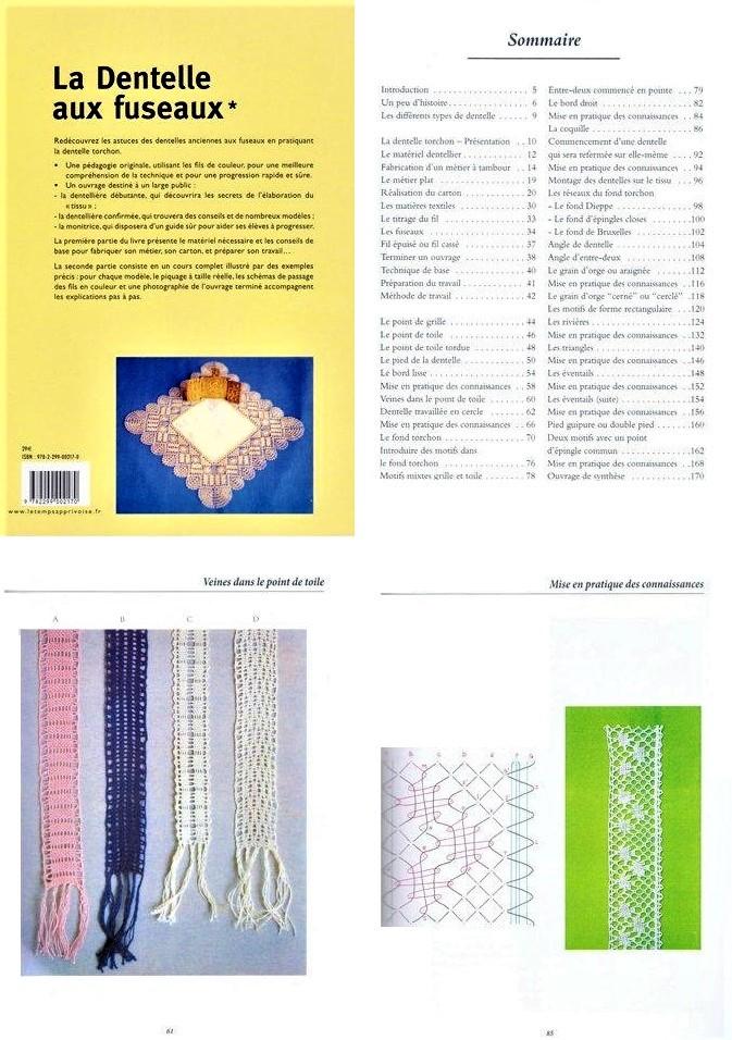 ボビンの種類や糸の巻き方、編み始めの糸のかけ方から糸の動きまで大きな写真と図で説明されています。見本写真も白一色と多色の二種類、載っているので糸の動きがよく判って理解しやすいと思います。