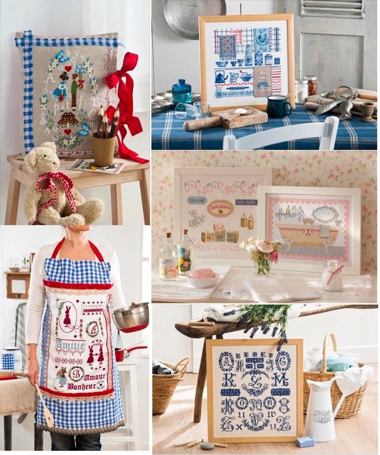 スミレの食器、石鹸、山のアルファベットサンプラー 、ヴェロニクさんのお部屋の図案が気に入っています。