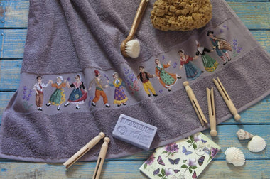 民族衣装で踊る図案とモンサンミッシェルに惹かれて購入しました。