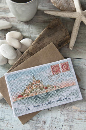 まずはモンサンミッシェルの図案から刺してバッグに仕立てたいと思います。