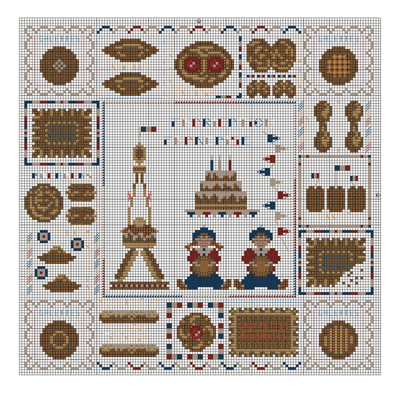 子供やお菓子の図案がたくさん掲載されていて充実の1冊です。