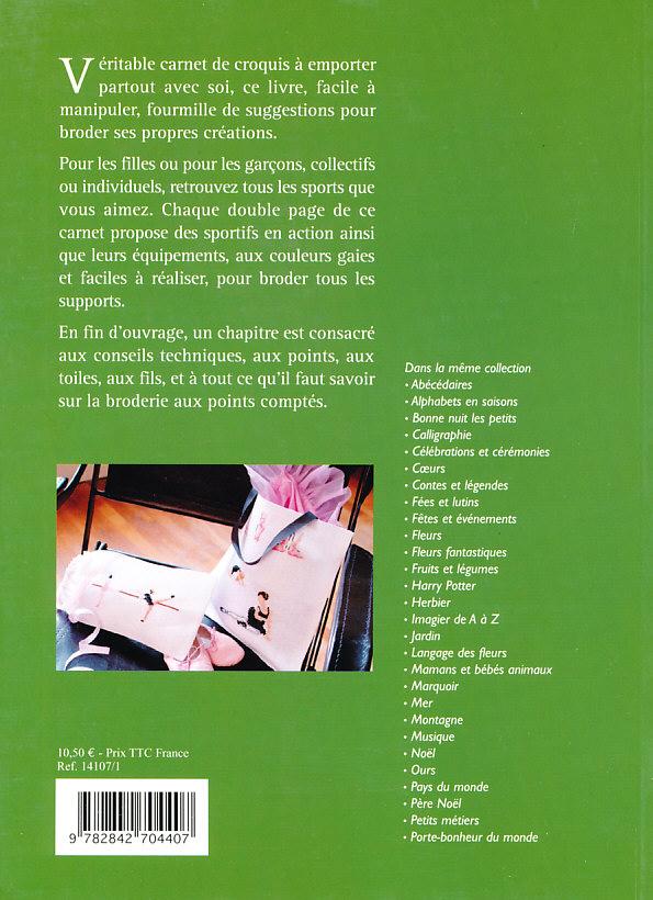 近年、ともて可愛らしい雰囲気の図案を発表している「MARIE-ANNE」さんですが、本書では、スポーツマンシップとでも言いましょうか・・・、真剣さが伝わってきます。 400を超えるスポーツモチーフには・・・、 ・乗馬 ・柔道 ・踊るバレー ・フィギュアスケート ・バスケット ・スノーボード ・テニス ・水泳 ・陸上 ・自転車 など 可愛らしい雰囲気ではないので、大きなお子さんの、また大人のスポーツバックのワン・ポイントにも向いています。 ページ数:80 出版社名:MANGO 著者名:Marie-Anne Rethoret-Melin 言語:フランス語 |