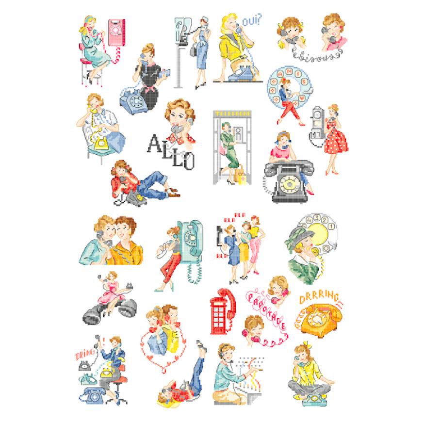 タイトル「L'Histoire des Dames du Telephone」:女性たちの電話の歴史 〈作品画像など〉 版元サイト[外部リンク] でその他イメージ画像をご覧いただけます。 あまり見かけなくなったダイヤル式の電話の数々、、、 レトロな時間旅行へ出発しましょう♪ 25種類のチャートに、 クリーム色の14カウントのパンチングカード2枚(22×24cm)が付属しています フランス製 出版社名:Les Brodeuses Parisiennes 言語:フランス語 |