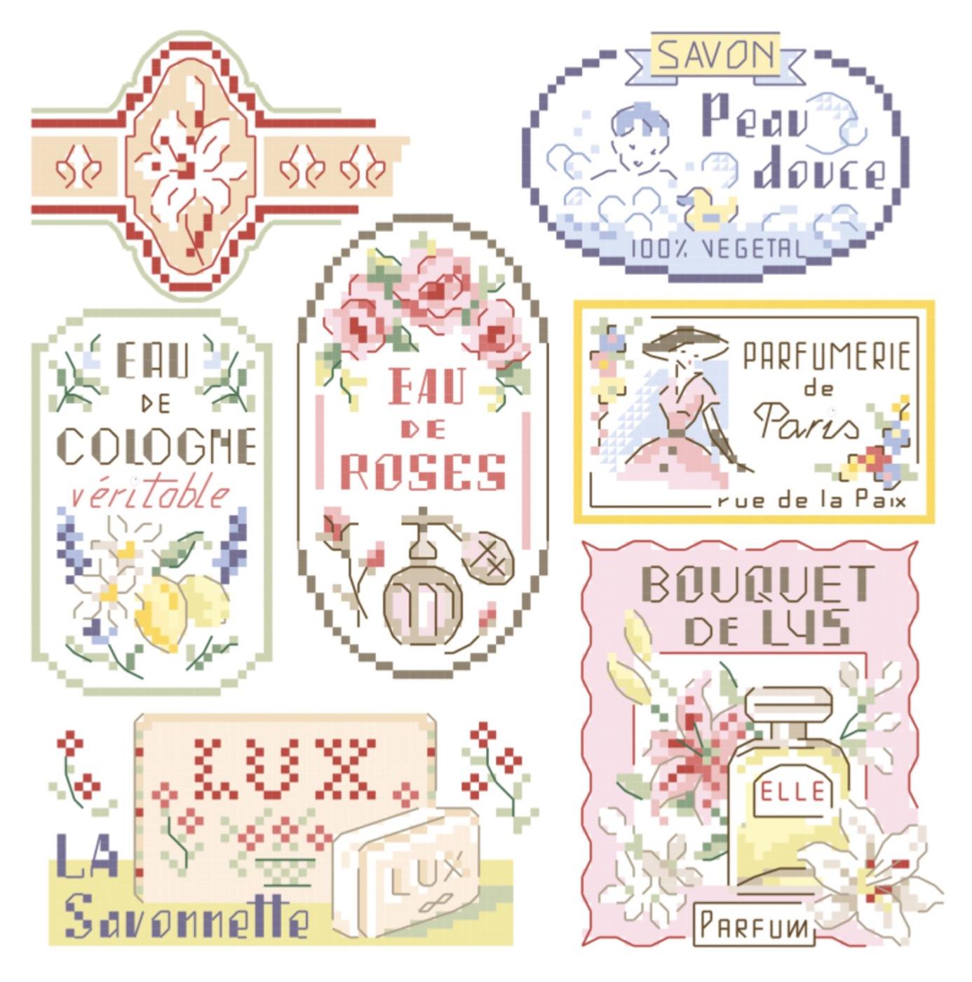 お客様からのリクエストにより取り扱いとなりました♪ 〈作品画像など〉 版元サイト[外部リンク] でその他イメージ画像をご覧いただけます。 この7種類のラベルは、かつての懐かしく、おしろいのような、石鹸の香りがする花の優しさを漂わせています。 化粧ポーチやエプロン、あるいはバスルームに素敵に額装して飾れば、デリケートでレトロな魅力でお部屋を彩ってくれるでしょう。 サイズ:最小サイズ:縦31ポイント × 横44ポイント、最大サイズ:縦54ポイント × 横27ポイント 出版社名:Les Brodeuses Parisiennes 言語:フランス語 |