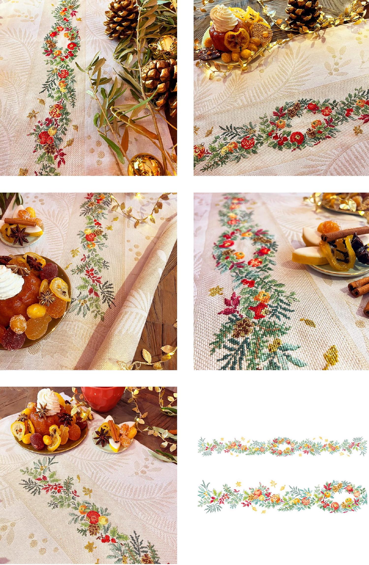 特別なひとときを演出する、ベリー、金色の葉、香り豊かな柑橘類、松ぼっくりが輝くテーブルランナー ◆キットの内容 ・ジャカード織りのテーブルランナー(色:エクリュとベージュとゴールドの色合い、サイズ:113×42 cm)、コットン製 ・布目の大きさ 1cmあたりの織糸数5.5本(5.5 threads per 1cm) ・チャート、シンボル、および色(DMC)は、510ポイント×60ポイント *糸、針は付いていません イタリア製 出版社名:Les Brodeuses Parisiennes 言語:フランス語 |