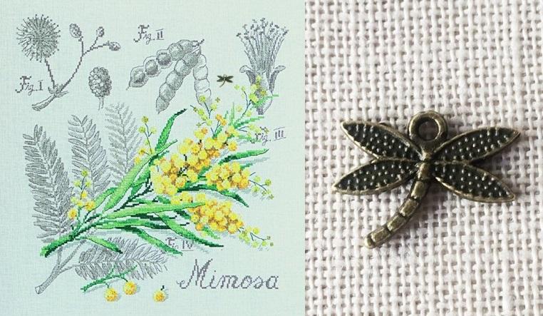 国内メーカーさんなどで、ミモザの図案が増えてきて、なんかミモザっていいかもとか思いながらも好きな図案が見つからないままだったんですが、インスタでこのミモザを刺していた方がいて、とても素敵で一目惚れしてしまったので即探しました。