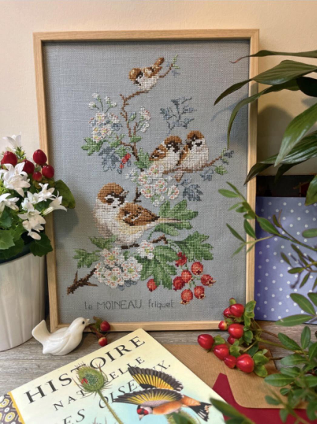 〈作品画像など〉 版元サイト[外部リンク] でその他イメージ画像をご覧いただけます。 野の花や、ベリーの間にとまるスズメを描いた繊細な作品 ◆内容 ・ヴェロニクさんのパターンチャート(DMCの参照付き) ・ブルーグレー色のリネン布(11目/cm、33×40cm) 同デザイン土台布アイーダはこちら 出版社名:Les Brodeuses Parisiennes 言語:フランス語 |