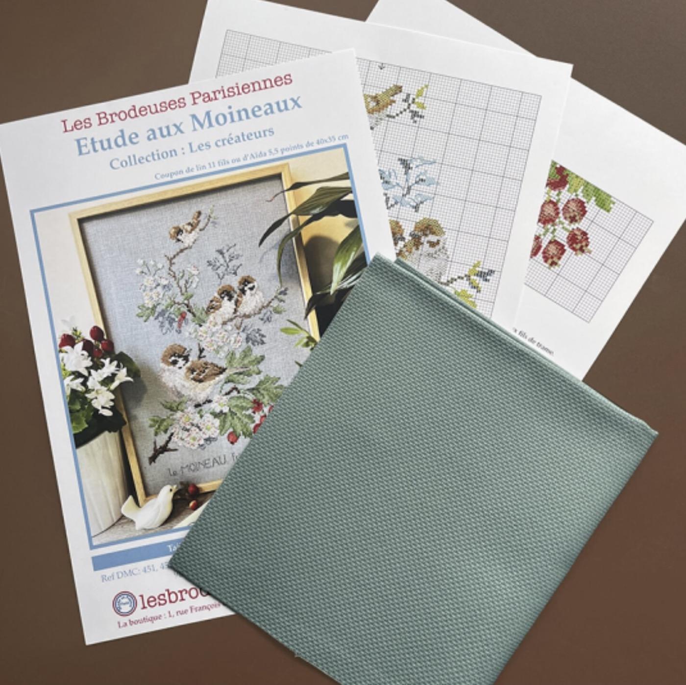 〈作品画像など〉 版元サイト[外部リンク] でその他イメージ画像をご覧いただけます。 野の花や、ベリーの間にとまるスズメを描いた繊細な作品 ◆内容 ・ヴェロニクさんのパターンチャート(DMCの参照付き) ・ブルーグレー色のアイーダ布(5.5目/cm、33×40cm) 同デザイン土台布リネンはこちら 出版社名:Les Brodeuses Parisiennes 言語:フランス語 |