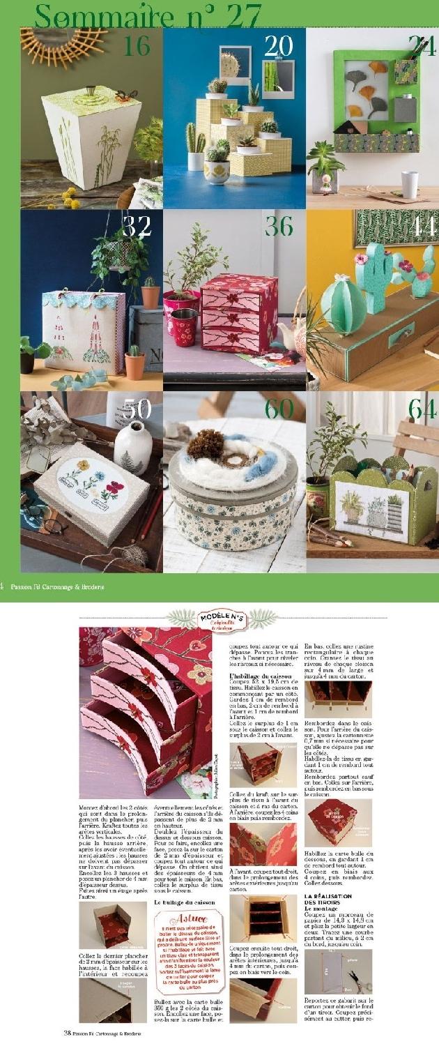 テーマは植物! 《作家への取材、本の紹介》 ・Martine Lintignatさんの『Boites en cartonnage 15 nouveaux modèles』 ・Sophie Liuさんの『Mes cartonnages décoratifs』 ・Bernadette Baldelliさんの『Blackwork』 《作品例》 カルトナージュのパターン、刺繍図案、写真を使った作り方の解説、材料など掲載されております。 ・草を刺繍した壺 スタンプワークの蝶を添えて ・鉢をはめ込める多肉植物飾り台(Carton-Marieさん) ・壁掛け式小物入れ ・マクラメプラントハンギングの刺繍つきの箱 ・花模様の引き出し(Carton-Marieさん) ・サボテンが乗った引き出し 花はフェルトやスタンプワークで ・植物標本をイメージした小箱 花はクロスステッチ ・サークルボックス ・鉢植えのクロスステッチつき収納ケース 《本誌の内容》 ◆C'est vous qui le faites! 読者の作品 コンクール作品やお便り、フランスのカルトナージュ愛好家の皆さんの作品がご覧いただけます。 選ぶ布や色など、ちょっとした文化の違いも見て取れることでしょう。 ◆フランスの手芸事情 ・新刊、著者の紹介 ・サロンの情報 言語:フランス語 |