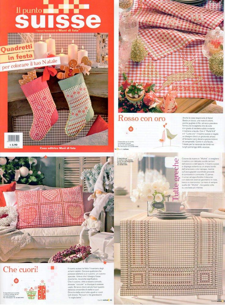 そのスイス刺繍の専門誌です。 以下の雑誌同様、本雑誌もクリスマス特集と普段用の素敵な柄の2部構成になっています 前半はインテリア小物特集が掲載 エプロンやキッチンクロスなどのキッチン周りの小物に刺したりんご柄がかわいい作品 テーブルランナーやマットにはスイス刺繍らしい柄を上品な色合いで テーブルクロスなどの大作もあります 後半はクリスマスの柄 赤のギンガムチェックでまとめたクリスマスツリーのオーナメント 星型のテーブルマットやスイス刺繍で可愛さ倍増のデコレーション用くつ下 金糸を使ったトナカイ柄のゴージャスなテーブルマット ハート柄がかわいいクッションなど 言語:イタリア語 |