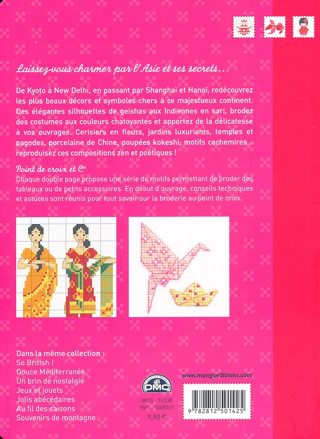 ・会期: 2020年8月1日早朝~8日(土) 0:00 (但し、ご応募総数が50件に達した時点で期限前であっても終了とさせていただきます。) ・数量: 1冊(最高額の1名様のみへの提供です) ・ダメモト予約でお買い物いただくことがご入札(ご応募)となります。 ・お買い物途中の「ご意見・ご感想」欄 ご購入希望の商品価格を1800円以上/100円単位で記述ください。 ・お一人様一回だけのご応募でお願いします。 (二回以上のご応募がある場合、全てのご応募が無効となります。) 【商品の状態について】 お客様からのご寄贈中古本です。(新品ではありません) 状態: 良 【価格記述に関するご注意】 ・事後に価格変更はできません。(お気持ちが確定してからお申込みください。) ・10円単位はすべて切り捨てとさせていただきます。 ・備考欄に価格の記述がない場合には、すべて1800円でのご応募で承ります。 ・同一価格に複数のご応募があつまった場合、 決選のため二度目の価格提示をしていただきます。(決まるまで繰り返し行なわれます。) 【ルールの補足】 ・商品価格とは別に、送料¥360&消費税が加算されます。 ・商品価格の50%もしくは100%が、 国境なき医師団(MSF)の「新型コロナウイルス感染症危機対応募金」へ寄付されます。 詳しくは、こちらのページをご参照ください。 【商品書評】 [◆今月の一冊(2014.12月)◆] 今年も「今月の一冊」にお付き合いくださいましてありがとうございました! 個人的になりますが・・・、今年は日本文化に触れる機会が数多くありました。パリでは北斎展が開催されています。アルザスでは日本文化展がありました。海外から高い関心と評価を受ける日本文化に、誇りを感じると同時に、身が引き締まる思いです。クロスステッチで日本を再発見!できそうな一冊で、2014年を締めくくらせていただきます。 ━━━━━━━━━━━━━━━━━━━━━━━━━━━━━━━━━━ 昨年10月に発売された「VOYAGES AU POIINT DE CROIX(COFFRET)」に入っていたノート風の図案集「アジア」版が、「Point de croix et Cie」シリーズの1冊に加わりました。 私たちアジアの人間が、「フランスと言えば・・・、エッフェル塔!フランスパン!」というようにパッと浮かんでくるイメージと同様、 ヨーロッパの人たちがイメージするアジアがモチーフになっている気がしました。 ◆100以上の図案から一部ご紹介させて頂きます。 ・着物の女性 ・お茶の作法 ・お寿司 ・桜 ・剣道、からて、柔道 ・北斎画 ・ヒンズー教の女性 ・ベトナムの光景 他 ご注意願います 「VOYAGES AU POIINT DE CROIX(COFFRET)」「アジア」図案と内容が重複します。約半分は重複図案です。 ページ数:72 出版社名:MANGO 著者名:Veronique Enginger / C.Lacroix / S.Yeytaud 言語:フランス語 |