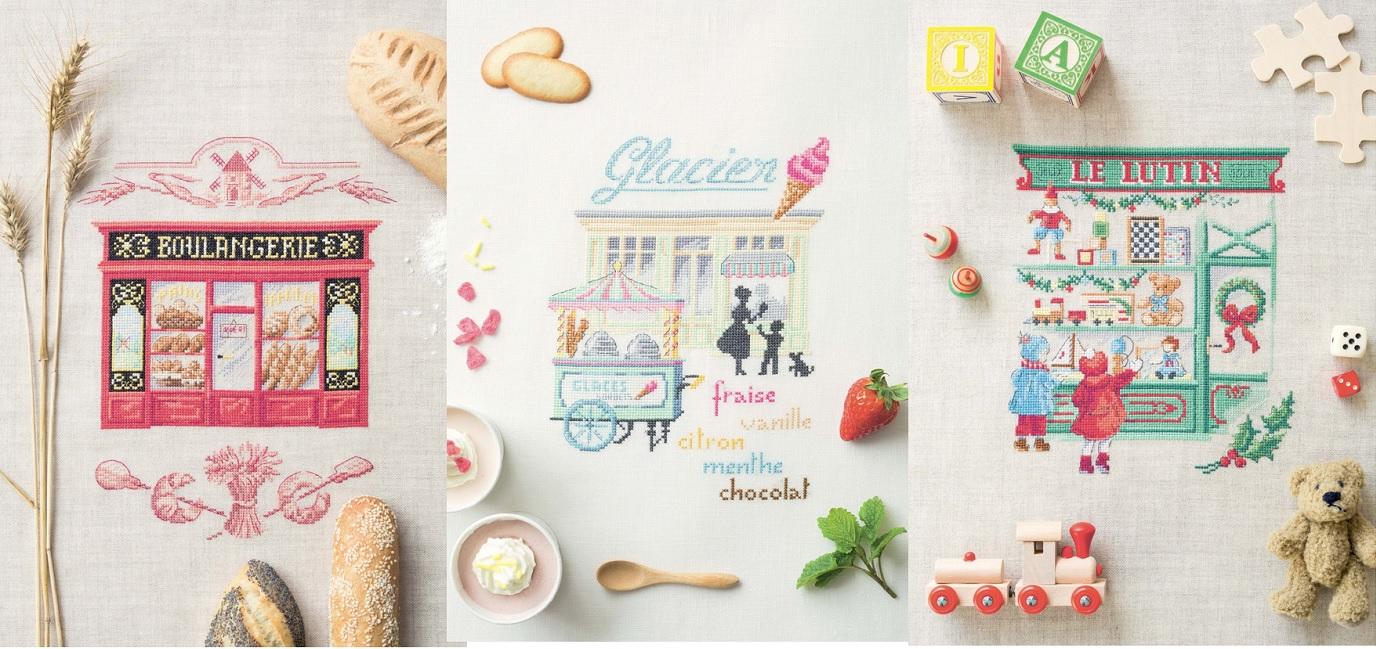 季節に合わせてフランスの店先などの図案が色鮮やかにデザインされていてとても素晴らしいです。クリスマスにおもちゃ屋さんの図案を刺してみて気づいたことは、写真の色合いと実際の色とはやや異なる点です。本書の写真はやや明るく彩度を上げてあると思われます。実際はもっとはっきりとした色でした。その点がやや残念ではありますが、どの図案もさすがヴェロニクさんと思わせる色合い、デザインでどれも刺してみたくなります。日本語版も出版されていますが、やはり原書のしっかりとしたハードカバーの装丁とフランス語の世界が気に入っています。