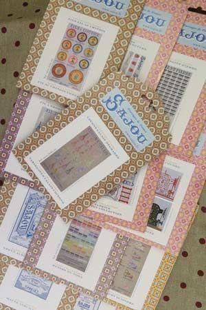 パッケージは素敵な模様の厚紙でできていて、内側には20種類のステッチの図解が載っています。ステッチ名がフランス語、英語、ドイツ語(たぶん)で表記されているので参考になりました。