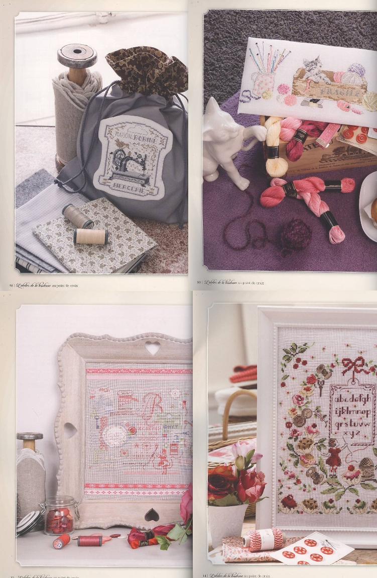 刺繍をテーマにした図案が載っています。1番のお気に入りはエレーヌさんの猫が裁縫箱に入った図案です。表紙に載ってるのはすべて刺したいです。最初のページのエレーヌさんの刺繍道具などが木に実ってる?図案も繊細で素敵です。とにかく、素敵な図案いっぱいです。