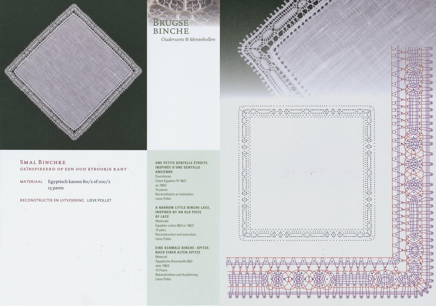 BINCHEレース11作品が掲載 Binche lace, in Bruges also called “ouderwetse” (old-fashioned lace), evolved from Old Flemish continuous thread lace and blossomed anew in Bruges at the beginning of the 20th century. The Apostoline Sisters designed, worked and taught this beautiful, delicate lace and gave it a whole new impetus with numerous square tallies. The lace rightly acquired the name “magic work”. Mentebolle lace is part of this traditional Bruges Binche family and is among the most popular of all Binche laces. The name refers to the small area worked in half stitch and surrounded by cloth stitch, possibly a sweet that was popular at the time. Sometimes this little figure is also called a “visblaas” (Translator’s note: literally a swim bladder – a droplet or flame shape). A visblaas is also part of one of the traditional motifs in architecture: a round tracing which tapers to a point at one end. ページ数:12 出版社名:KANTCENTRUM 著者名:Lieve Pollet |