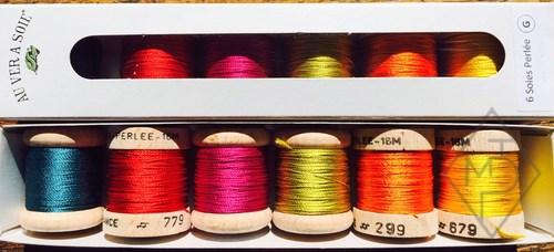 1820年創業、フランス高級絹糸メーカー"AU VER A SOIE"の刺繍糸Soie Perleeの6色セットです。